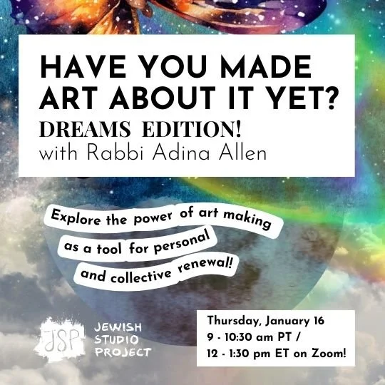 Using the Jewish Studio Process - a unique methodology combining practices from the field of art therapy with a reimagined approach to Jewish learning and spirituality - we’ll tap into the transformative power of creativity and collective dreaming, exploring the visions of a future rooted in collective care and boundless possibility. Together, we’ll dream our way towards the world we long to see.